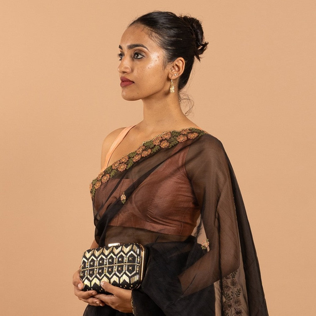 Handmade Classy ivory clutch bag made by hand. Earthy colors, subtle styles, good fit. You can carry this with any outfit and the metal sling is detachable. With a 5*7 inch case, it fits the big phones, keys and other similar items with ease.